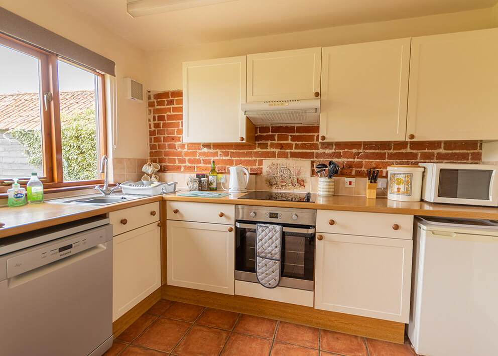 • Fully equipped kitchen, with single oven, hob, dishwasher, microwave, fridge with top freezer compartment (extra freezer space available in games room kitchen).